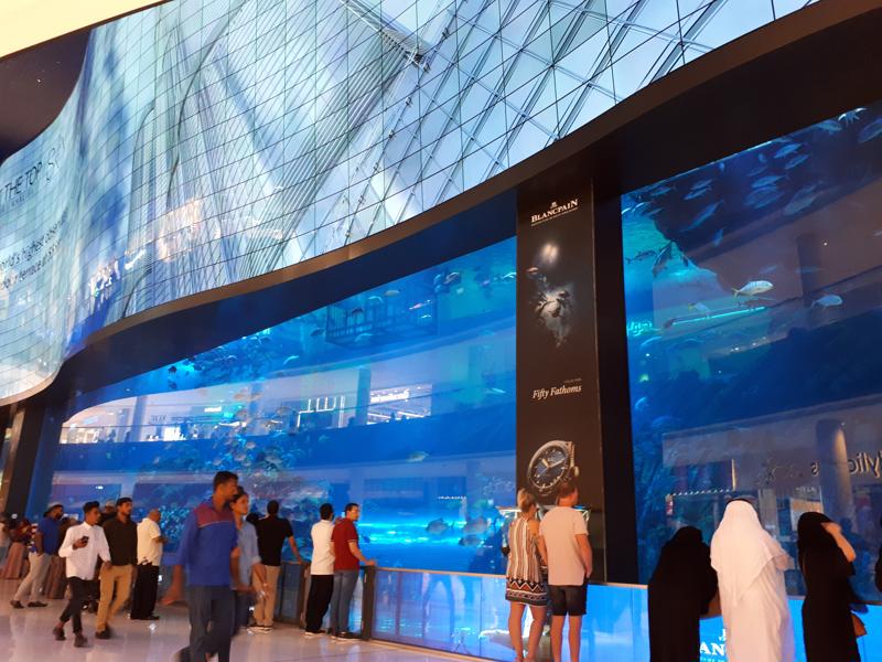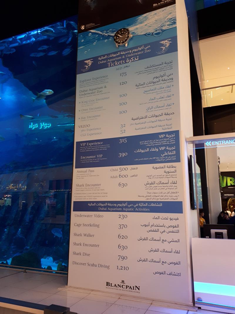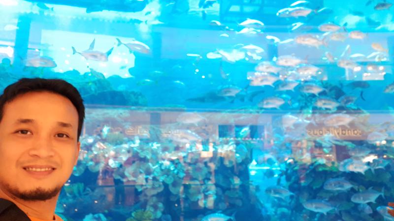 Dalam Dubai Mall terdapat atraksi Dubai Aquarium, yang waktu itu saya hanya sempatkan liat dan foto dari luar saja, karena masuknya mahal cuy, jujur saya waktu itu cuma sempat ambil uang cash AED 500 ~ IDR 2 juta, dipakai AED 160 buat main 4×4 Dune Bashing di Sharjah, sisanya buat beli oleh-oleh dan pakai transportasi, jadi masuk ke aquarium, makasih deh, rasanya sama kaya main di Sea World atau Jakarta Aquarium.