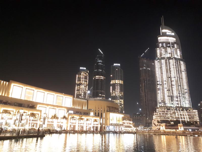 Di tengah-tengah Burj Khalifa dan Dubai Mall, ada kolam besar yang menjadi pusat perhatian wisatawan di sini, karena setiap jam akan ada pertunjukan Dancing Fountain dengan theme song beberapa lagu populer di dunia, setiap kali pertunjukan Dancing Fountain ini lamanya kira-kira sekitar 5-6 menit, dengan sound system dan permainan cahaya yang sudah pasti kelas dunia, memang jadi daya tarik tersendiri bagi orang-orang untuk menghabiskan malam di sekitar area ini.
