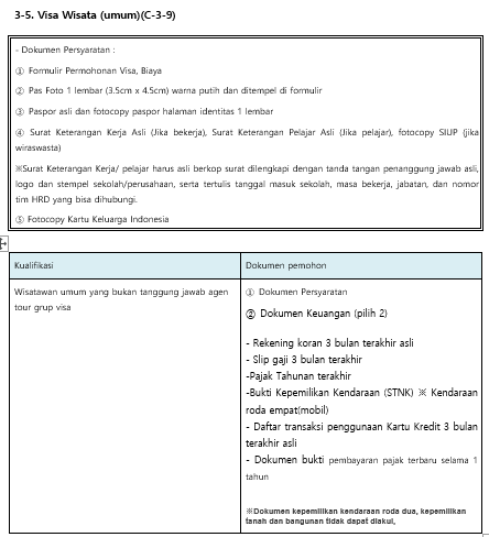 Ini adalah screenshot dari keperluan dokumen visa wisata umum, yang versi lengkap petunjuknya ada di dokumen ini, dan juga formulir visa, yang bisa didownload di website KVAC yang saya sebutkan sebelumnya, saya ga taruh link di sini, karena akan lebih update di web KVAC.