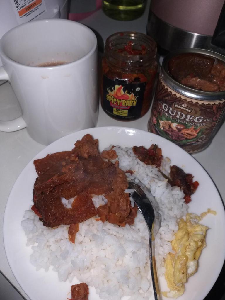 Kami membawa beras, beberapa makanan siap saji yang dikeringkan (dendeng, ayam suwir), sambal, kecap, dll, semua selera khas Indonesia deh… karena untuk makanan agak sulit untuk mendapatkan makanan halal, selain itu juga sebagai upaya cost saving 😋