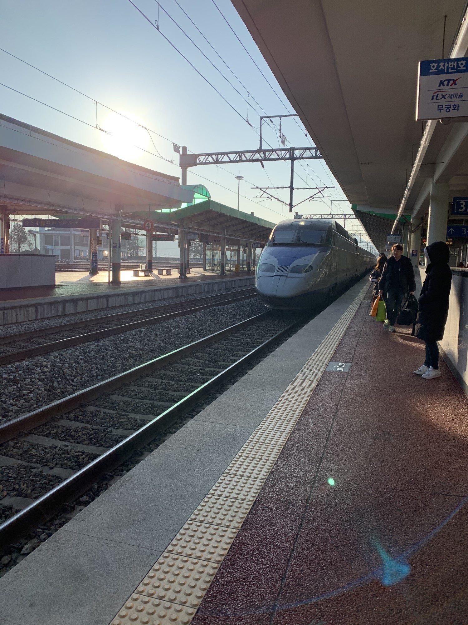 Kami mengandalkan kereta api sebagai transportasi utama di Korea Selatan, baik itu transportasi dari dan ke airport, ataupun untuk keperluan dalam kota, bus kota juga kami gunakan di beberapa tempat, dan taksi di Jeonju.