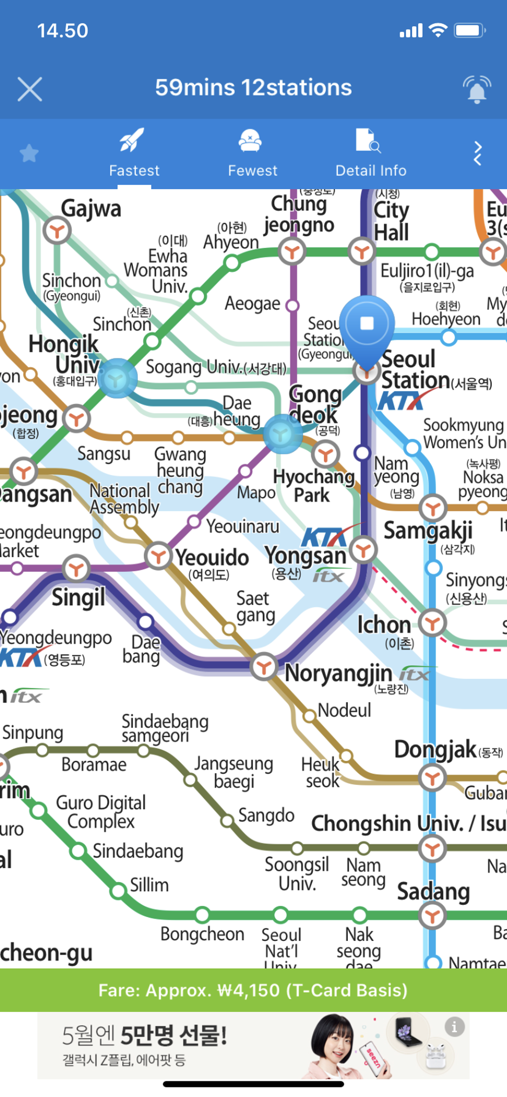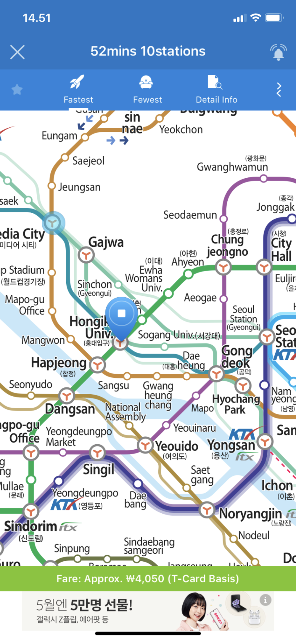 3. Untuk mencapai apartemen kami harus dari Hongik Univ. Station, jadi kami balik lagi dari Seoul Station ke Hongik Univ dengan All-Stop AREX, ya resiko beli tiket lagi juga…😁