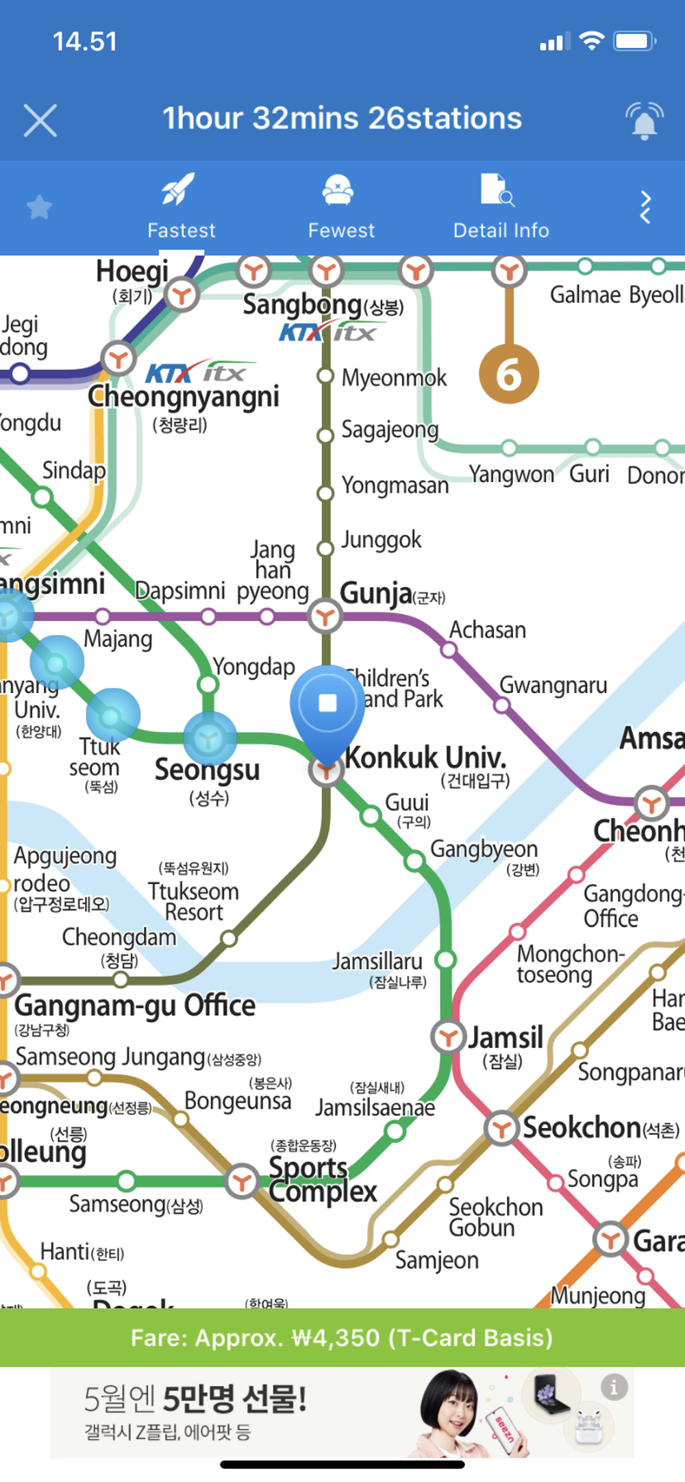 4. Dari Hongik Univ Station, kami pakai Green-Line no.2 ke arah Konkuk University.