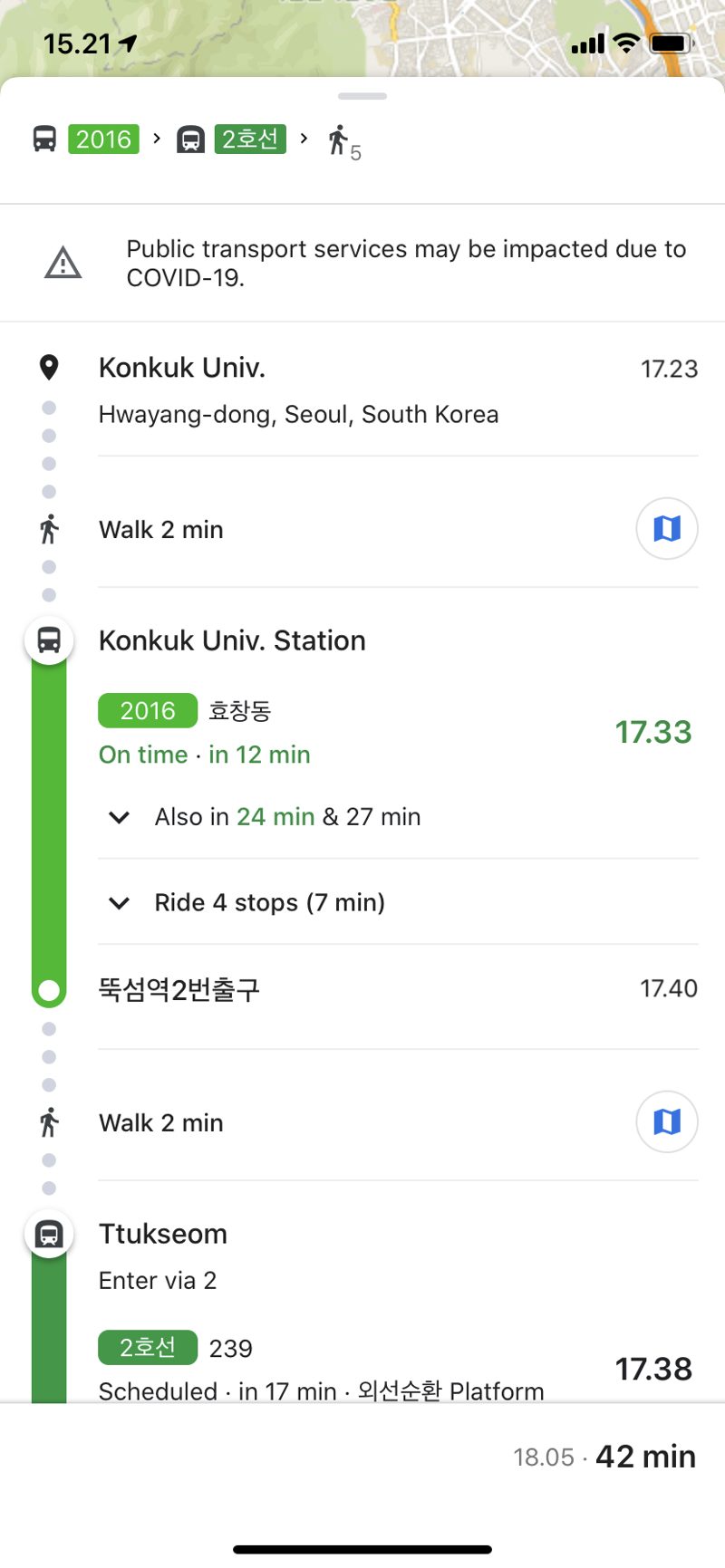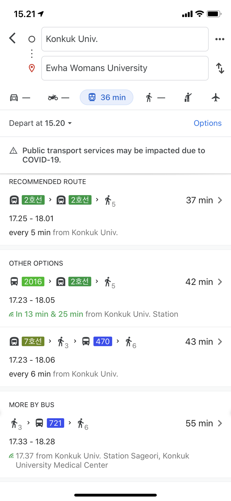 Bus Kota – Kami tidak menggunakan aplikasi apapun untuk bus kota, karena kami jarang pakai bus, dan lebih coba-coba untuk melihat jalurnya di Google Maps, o ya, karena sempat nyebut Google Maps, sedikit info, di Korsel, Google Maps ga bisa digunakan untuk navigasi dengan berjalan kaki, tapi kalau navigasi untuk transportasi umum, sekalipun antar kota, Dan rute-nya lumayan akurat untuk nomor bis yang lewat halte tersebut.