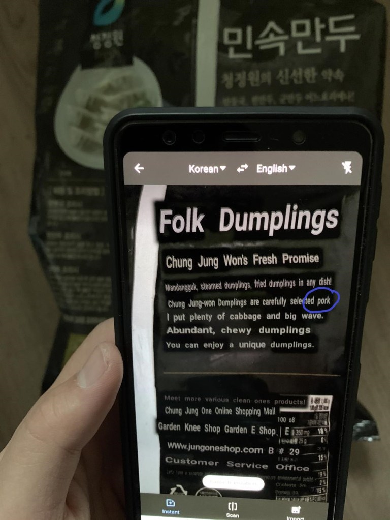 Tambahan dikit tentang konektivitas, ga ada kaitannya dengan modem, tapi ini tools yang banyak di HP kawan-kawan, yes, Google Translate, di masa kini kayanya app ini harusnya banyak membantu, ini beberapa contoh yang saya pakai, bahkan buat detect di makanan yang ditinggalin sama penyewa kamar sebelumnya bisa kami makan atau ga (mengandung 🐷)