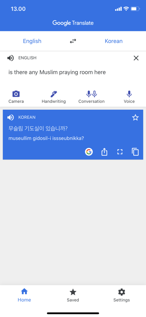 • Incheon Airport – Tersedia, di area keberangkatan saja, kalau di kedatangan ada tempat ibadah multi-faith, karena bentuknya kapel dan kuil, saya shalat di luarnya.