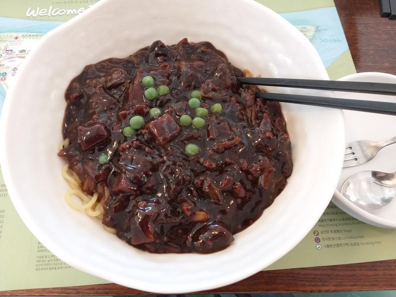 Di tempat makan kami memesan menu serba mie yang lupa namanya apa, nama restorannya kalau ga salah Asian Cuisine Halal Restaurant dan total makan di sini kalau ga salah sebesar KRW 22,000 untuk 3 porsi menu (termasuk menu non-spicy buat anak kami).