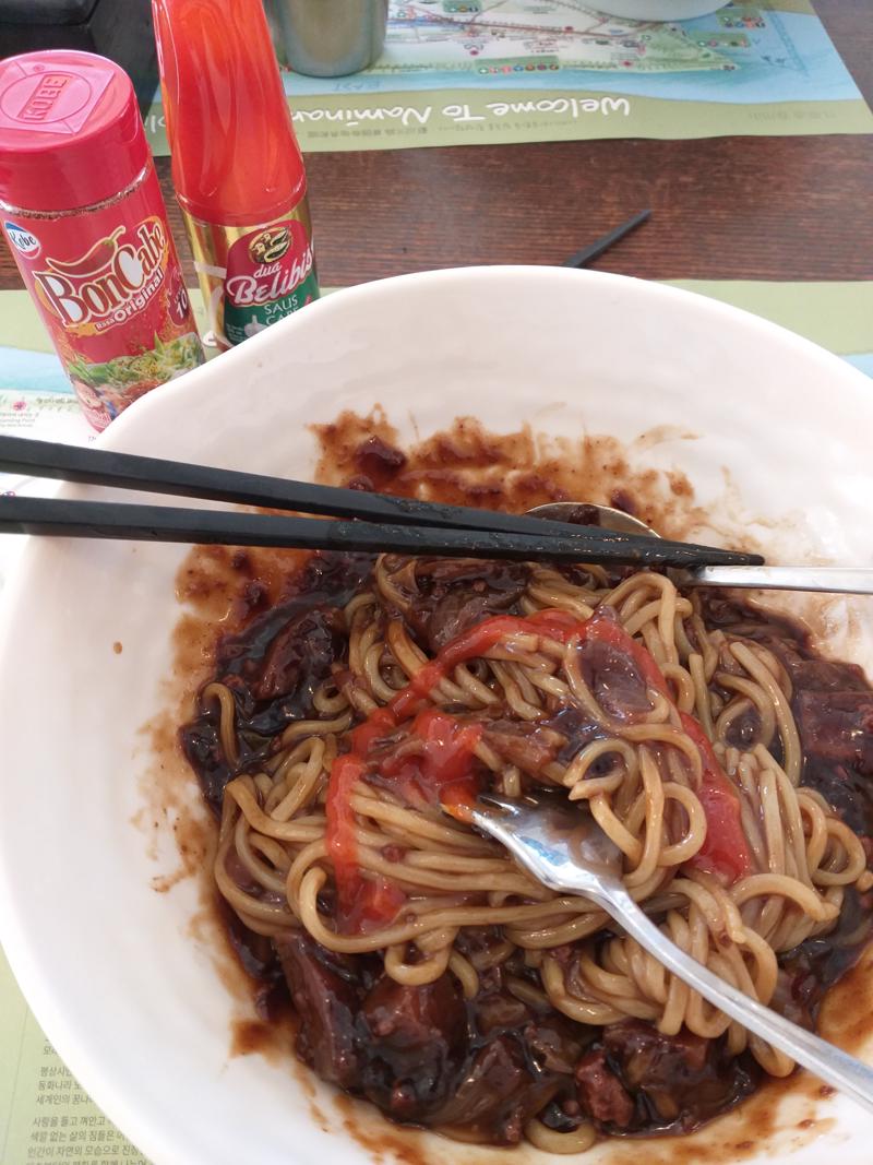 Sudah menjelang pukul 14.00, di Nami Island enaknya tersedia musholla dan tempat makan Halal, seperti saya bilang tadi, Nami Island ini banyak banget turisnya, dari negara mayoritas muslim seperti Indonesia dan Malaysia.