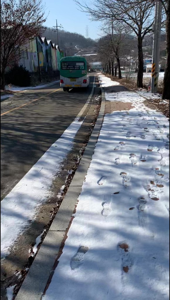 Berbekal Google Maps, kami coba explore kembali jarak dari halte Sinbuk ke arah Pocheon Art Valley, dan akhirnya kami memutuskan berjalan kaki 2 km di suhu sekitar -1 derajat Celsius yang justru memberi banyak pemandangan yang sayang untuk dilewatkan, cukup terasa asing, dan kaya ga ada siapa-siapa…🤣