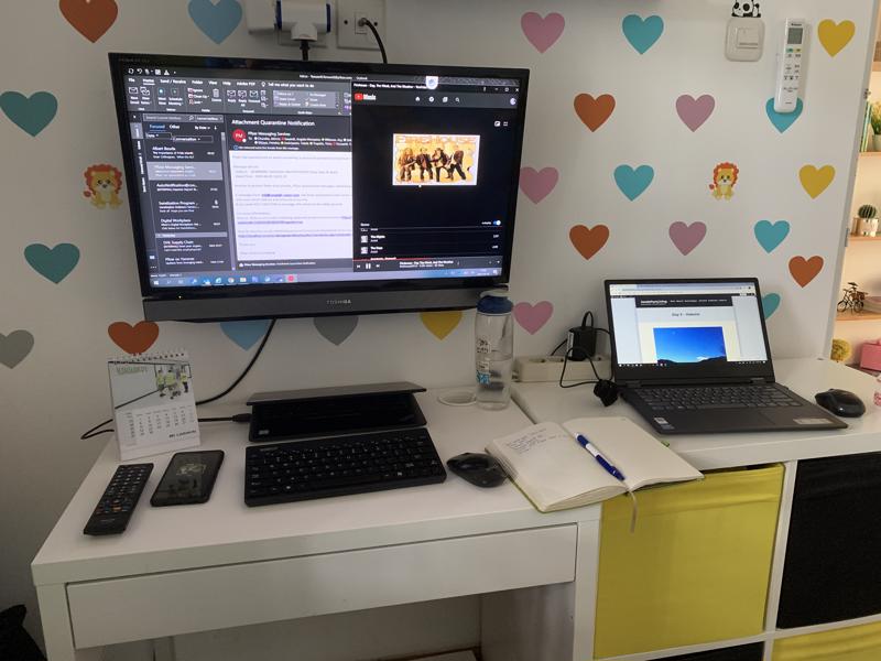 Saya bilang kelakuan mulai random, karena di period ini saya mulai “menginvasi” kamar anak saya 🤪 yang lebih nyaman buat workstation selama WFH, bukan cuma itu, saya mulai lebih sering belanja online alat-alat yang mendukung ergonomic position, beli meja kecil buat support laptop, beli wireless keyboard, pindah posisi kerja…