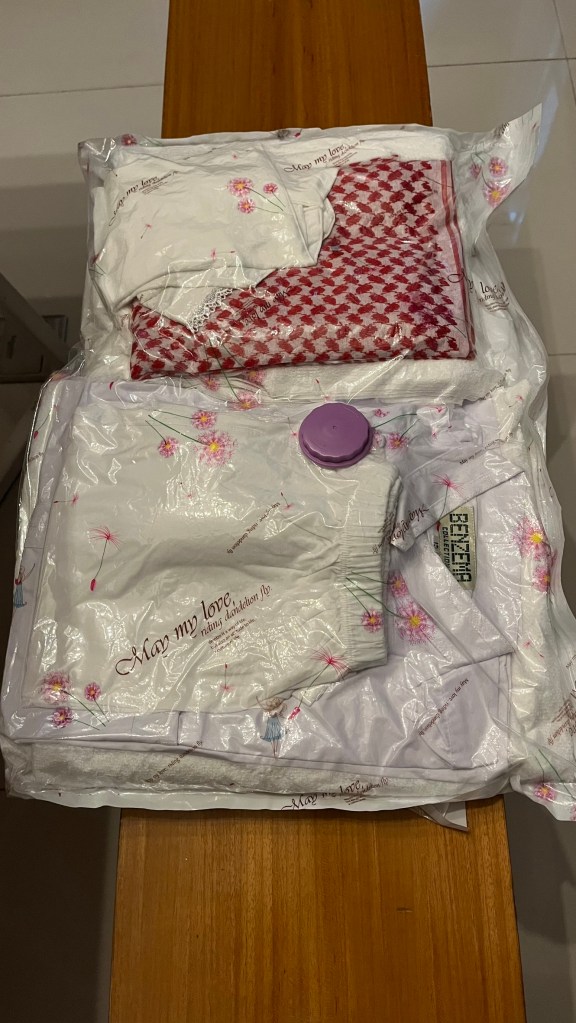 Kami selalu juga menggunakan space saver dengan manual pump, space saver ini cukup murah dan bisa didapatkan di marketplace dan bisa dapat 10 kantong plastik berbagai ukuran (Cuma bahannya kurang awet, paling dipake traveling sekali terus robek), ini sangat membantu dalam proses pengemasan pakaian, karena mempermudah menutup koper, apalagi pas pulang banyak tambahan bawaan.